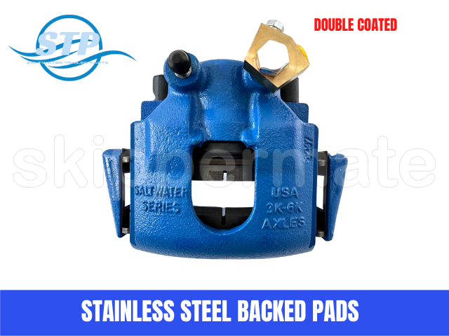 SALTWATER COATED Trojan Style Hydraulic Caliper with STAINLESS Steel Backed Pads.