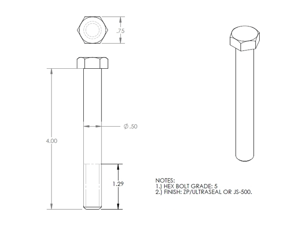 BOLT HEX HEAD 1/2"-13X4" (INCLUDES NUT & WASHER)